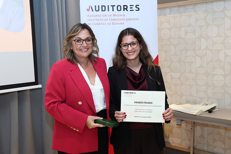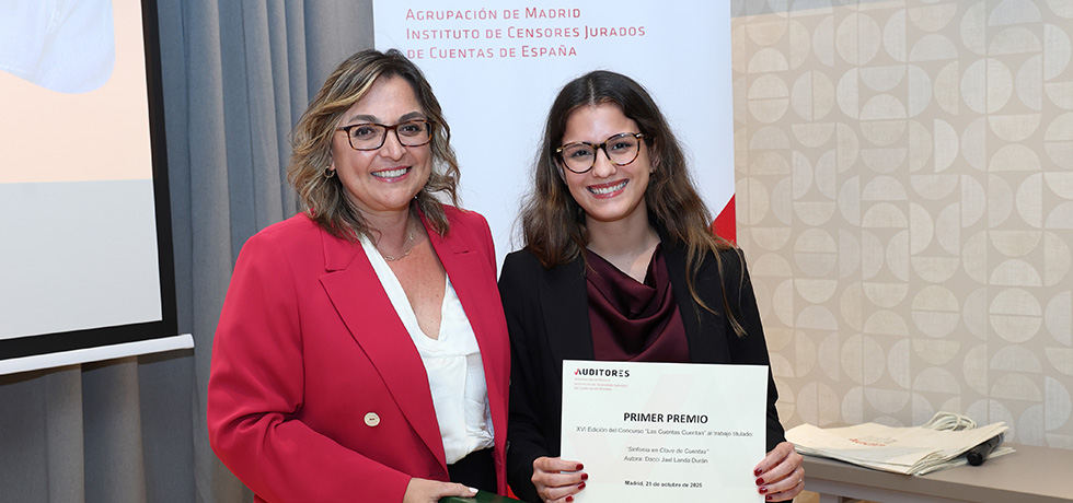 En la foto aparecen, de izquierda a derecha, Ana María Prieto, presidenta de la Agrupación de Madrid y Dacci Jael Landa Durán, ganadora del primer premio.