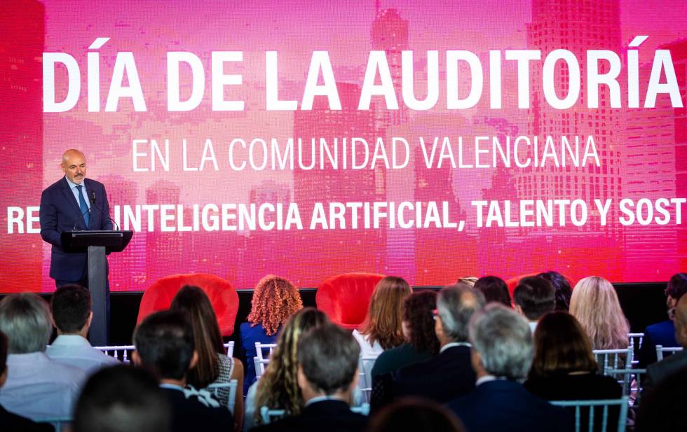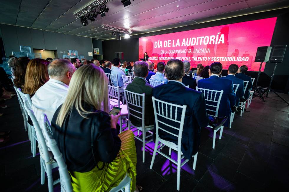 La presidenta del Colegio de Auditores de la Comunidad Valenciana, Lola Mor, junto con el secretario autonómico de Hacienda de la Comunidad Valenciana, Eusebio Monzó; la interventora general de la Generalitat, Amparo Adam; el presidente del ICAC, Santiago Durán; y el presidente del ICJCE, Ferrán Rodríguez; explicó que las empresas tienen que prepararse para afrontar las nuevas regulaciones sobre sostenibilidad, durante la celebración hoy del Día de la Auditoría de la Comunidad Valenciana, al que asistieron más de un centenar de profesionales del sector, en una jornada titulada: “Nuevos retos: inteligencia artificial, talento y sostenibilidad”.