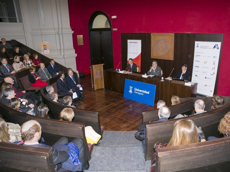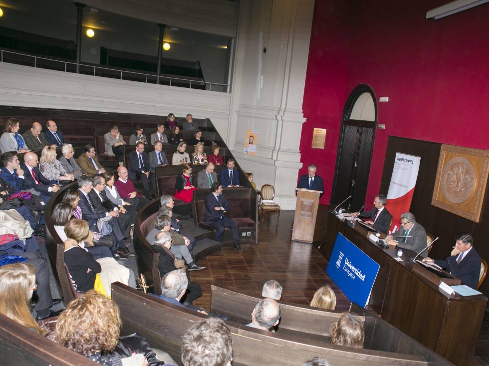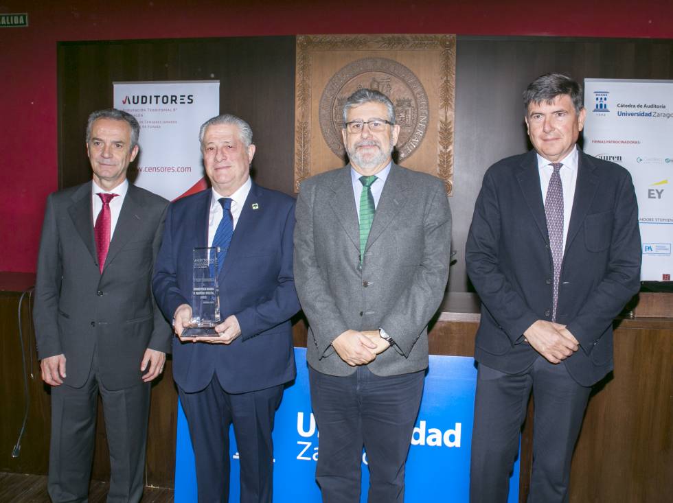 El Rector de la Universidad de Zaragoza, José Antonio Mayoral Murillo, junto con el presidente del Instituto de Censores Jurados de Cuentas de España en Aragón, Javier Castillo Eguizabal, presidieron la mesa de del premio, que se entregó al presidente de la Asociación Tutelar Aragonesa de Discapacidad Intelectual (ATADES), Jesús Soto. El galardón se otorgó en colaboración con la Cámara de Cuentas de Aragón, la Cátedra de Auditoría de la Universidad de Zaragoza y el Consejo Económico y Social de Aragón (CESA).