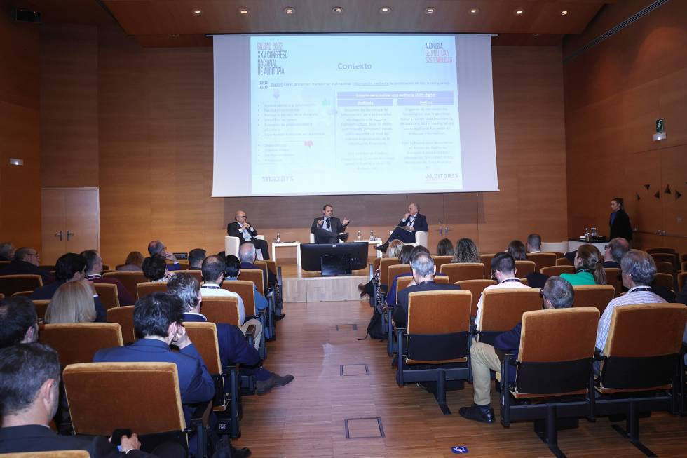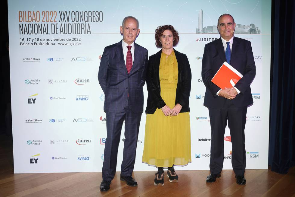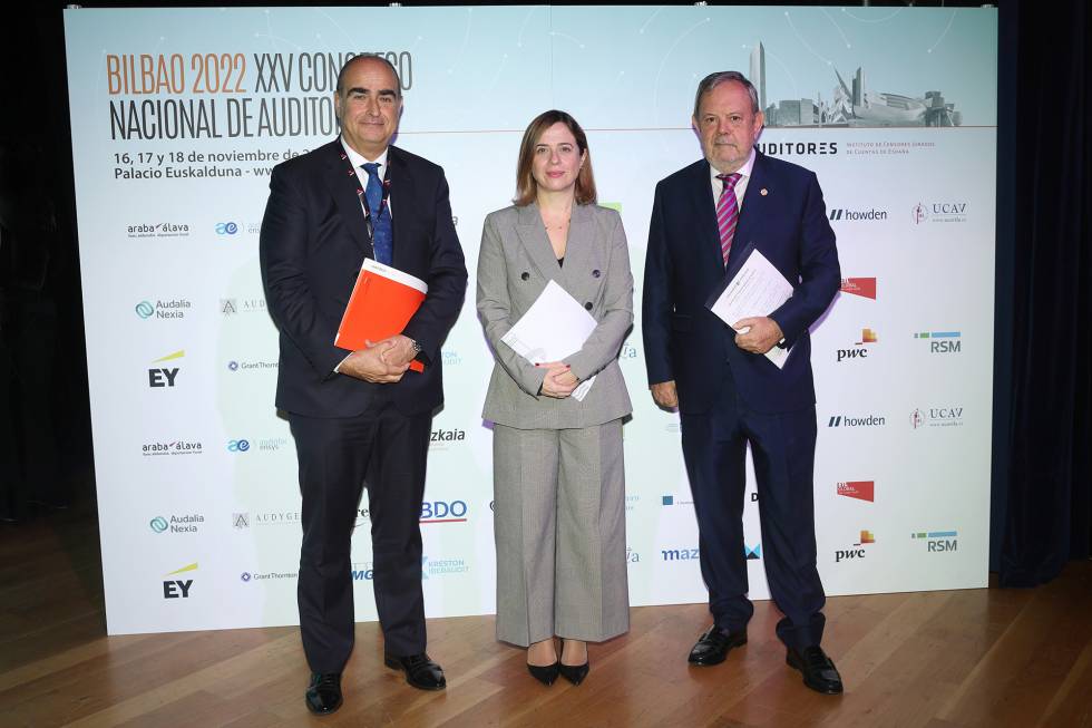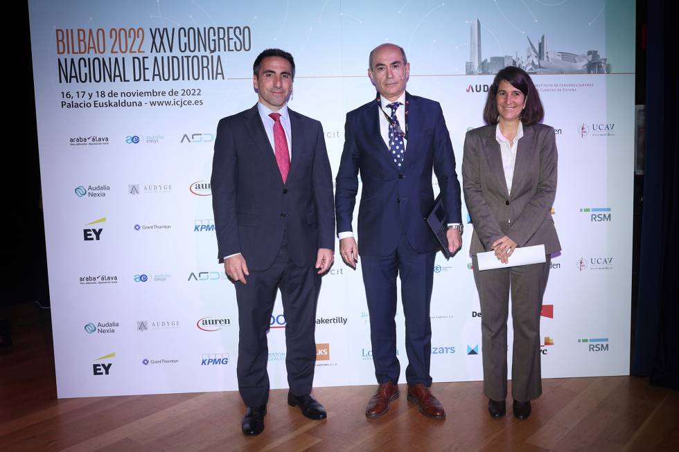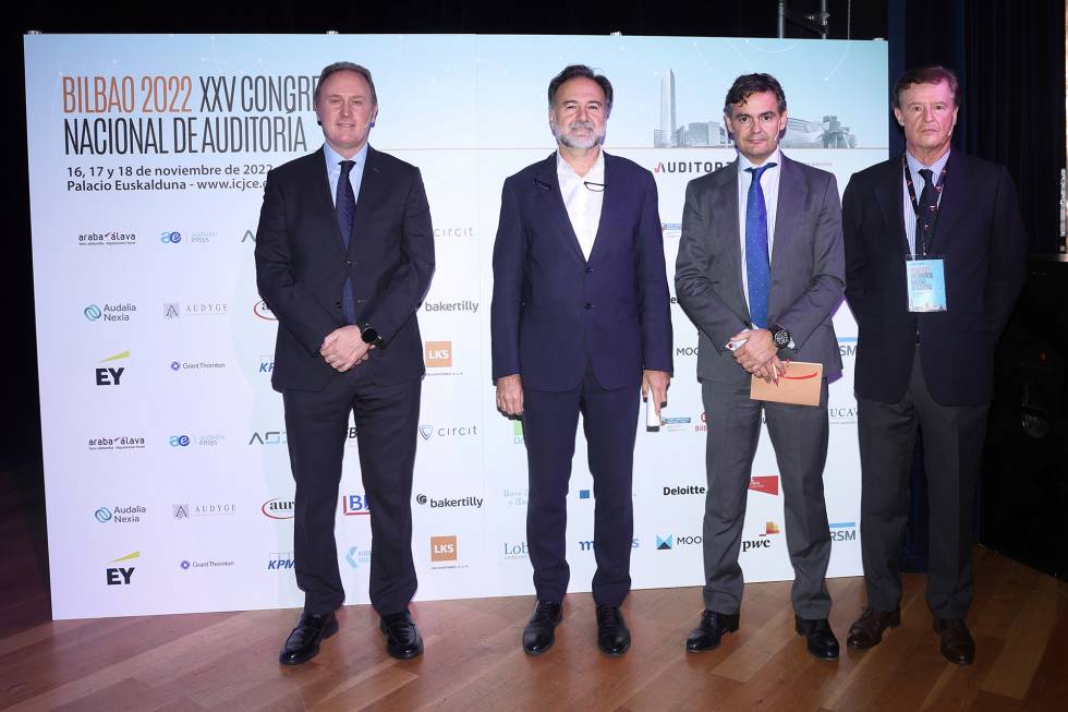 El presidente del Instituto de Censores Jurados de Cuentas de España (ICJCE), Ferrán Rodríguez, acompañado por el presidente del Instituto de Contabilidad y Auditoría de Cuentas, Santiago Durán, el presidente de la Agrupación del País Vasco, Santiago Eraña, y la primera teniente de alcalde y concejala de Seguridad Ciudadana del Ayuntamiento de Bilbao, Amaia Arregi, analizó durante la inauguración del XXV Congreso Nacional de Auditoría, que se celebró en el Palacio Euskalduna de Bilbao, el papel de los auditores en la estrategia ESG de las empresas y el resto de elementos que en estos momentos marcan la coyuntura del sector. Asistieron al Congreso más de 600 profesionales y más de 100 de firmas que representan a cerca del 90% de la facturación del sector.