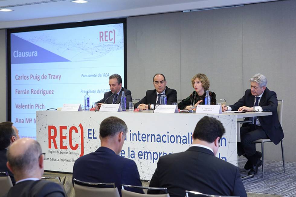 La tercera edición de la Jornada Nacional del REC analizó el papel de los expertos contables en la internacionalización de las empresas españolas. En los debates organizados participaron algunas de las personas y entidades públicas que son hoy referencia de la internacionalización y de las finanzas españolas, como la secretaria de Estado de Comercio, Marisa Poncela; la vicepresidenta de la CNMV, Ana María Martínez-Pina; el presidente de la Cámara de Comercio de España, José Luis Bonet; o el presidente de COFIDES, Salvador Marín.