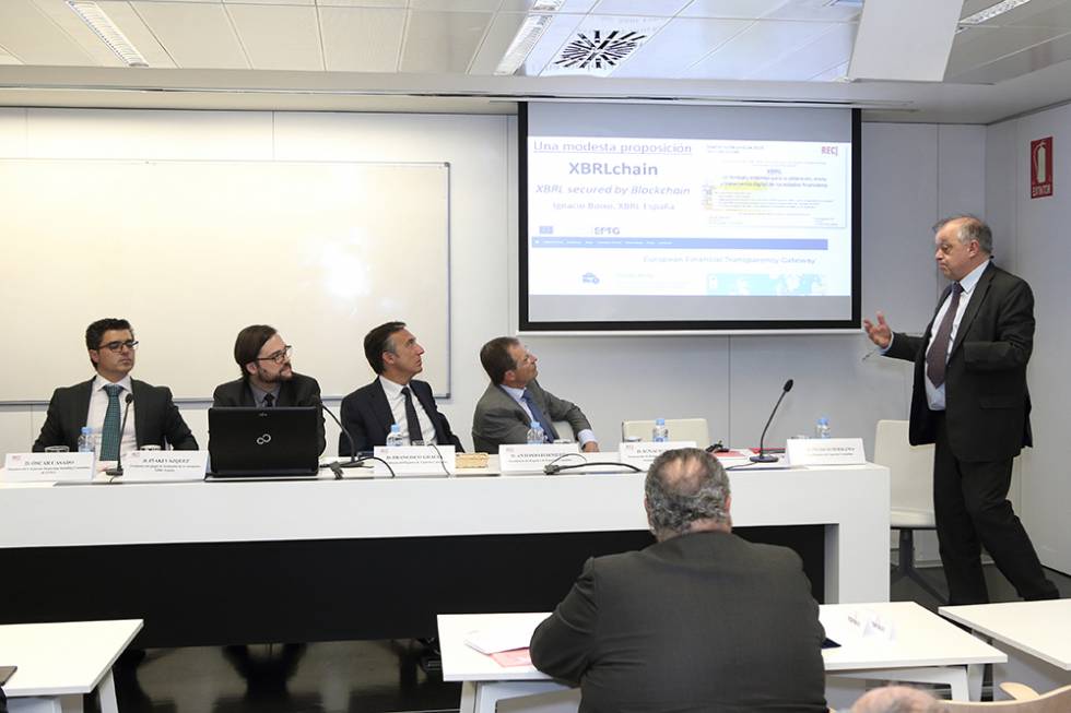 Por su parte, Oscar Casado, miembro del Corporate Reporting Standing Committee de la Autoridad Europea de Mercados de Valores -ESMA- detalló el contenido del nuevo Reglamento que convierte a XBRL en el estándar elegido por Europa para la comunicación de información financiera. La sesión continuó con la disertación de Ignacio Boixo, responsable de relaciones internacionales de XBRL sobre XBRLChain, uno de los proyectos más significativos de XBRL en el que se combinará la versatilidad del XBRL con la seguridad de tratamiento de datos que imprime la tecnología Blockchain.