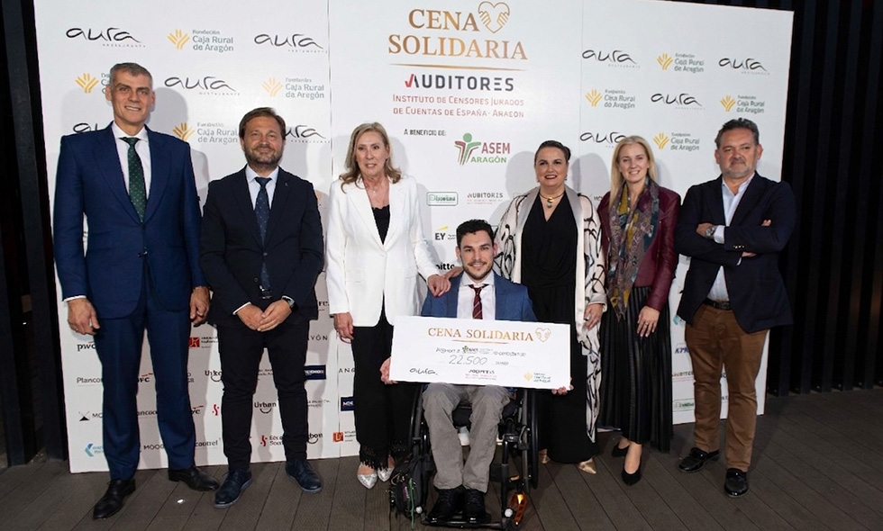 La Agrupación Territorial 8.ª de Aragón del Instituto de Censores Jurados de Cuentas de España (ICJCE) ha celebrado esta tarde la I Cena Solidaria del ICJCE Aragón, un encuentro que ha reunido a representantes institucionales, empresariales y del ámbito académico con un objetivo común: apoyar la labor de ASEM Aragón, la Asociación Aragonesa de Enfermedades Neuromusculares. La recaudación del evento, que ha superado los 20.000 euros, se destinará a los programas de atención, acompañamiento y rehabilitación que esta entidad desarrolla para personas y familias afectadas por más de 150 patologías neuromusculares degenerativas, con un gen raro y muy graves, como ELA, Duchenne o Steinert. La iniciativa ha contado con el patrocinio del Complejo Aura y el ICJCE y con la colaboración de la Fundación Caja Rural de Aragón como parte de su compromiso con las acciones solidarias del territorio.