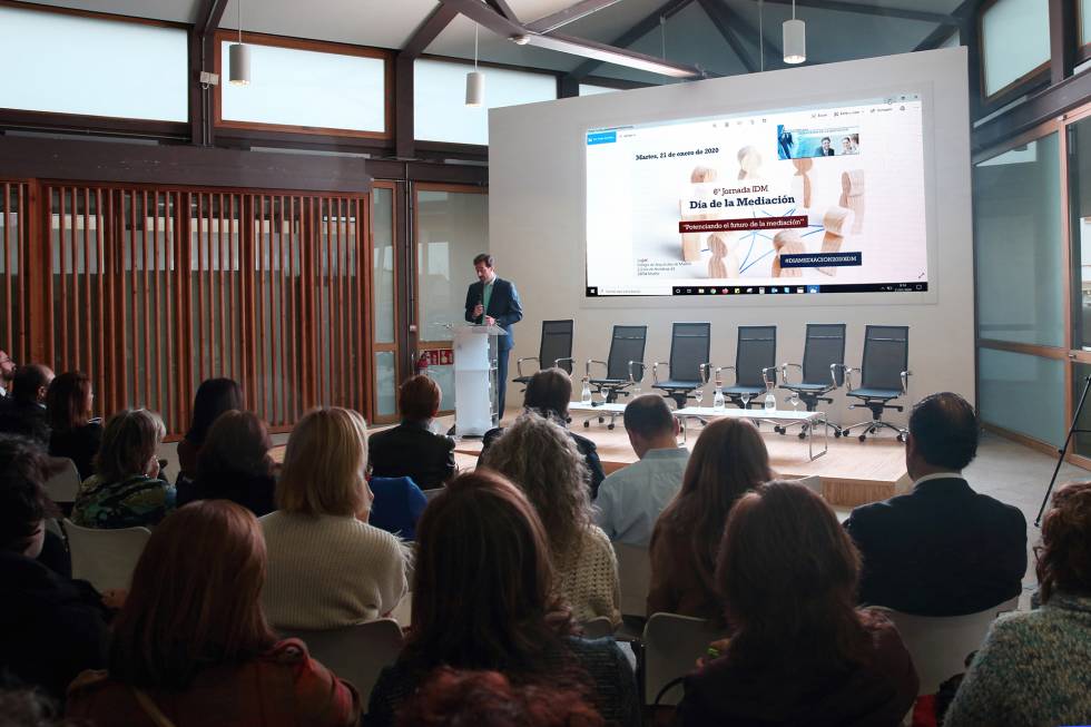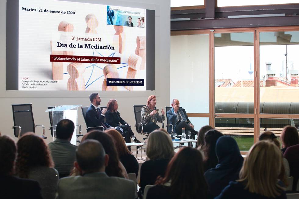 IDM ha celebrado esta mañana la VI Jornada conmemorativa del Día Europeo de la Mediación, en la sede del Colegio de Arquitectos de Madrid. Durante la jornada se han repasado las ideas y objetivos de los grupos de trabajo creados en el seno de "Foro Mediación", el cual fue establecido por Orden Ministerial, tutelado y coordinado por el Ministerio de Justicia, con la finalidad de institucionalizar la colaboración y fortalecer el diálogo permanente entre el Ministerio de Justicia y la sociedad civil, su tejido asociativo y los operadores del ámbito de la mediación, en temas relacionados con la mediación.