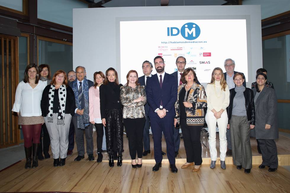 Integran IDM: Asociación Madrileña de Mediadores; Cámara de Comercio de Madrid; Colegio de Abogados de Madrid; Colegio Oficial de Aparejadores de Madrid; Colegio Oficial de Arquitectos de Madrid; Colegio de Economistas de Madrid; Colegio de Ingenieros de Caminos, Canales y Puertos, Demarcación de Madrid; Colegio Oficial de Ingenieros Técnicos Industriales de Madrid; Colegio Oficial Gestores Administrativos de Madrid; Colegio de Graduados Sociales de Madrid; Colegio Oficial de Médicos de Madrid; Colegio de Procuradores de los Tribunales de Madrid; Colegio Oficial de Psicólogos de Madrid; Colegio Oficial de Trabajo Social de Madrid; Instituto de Censores Jurados de Cuentas de España; Fundación Notarial SIGNUM; Federación Nacional de Asociaciones profesionales de Mediación (FAPROMED).