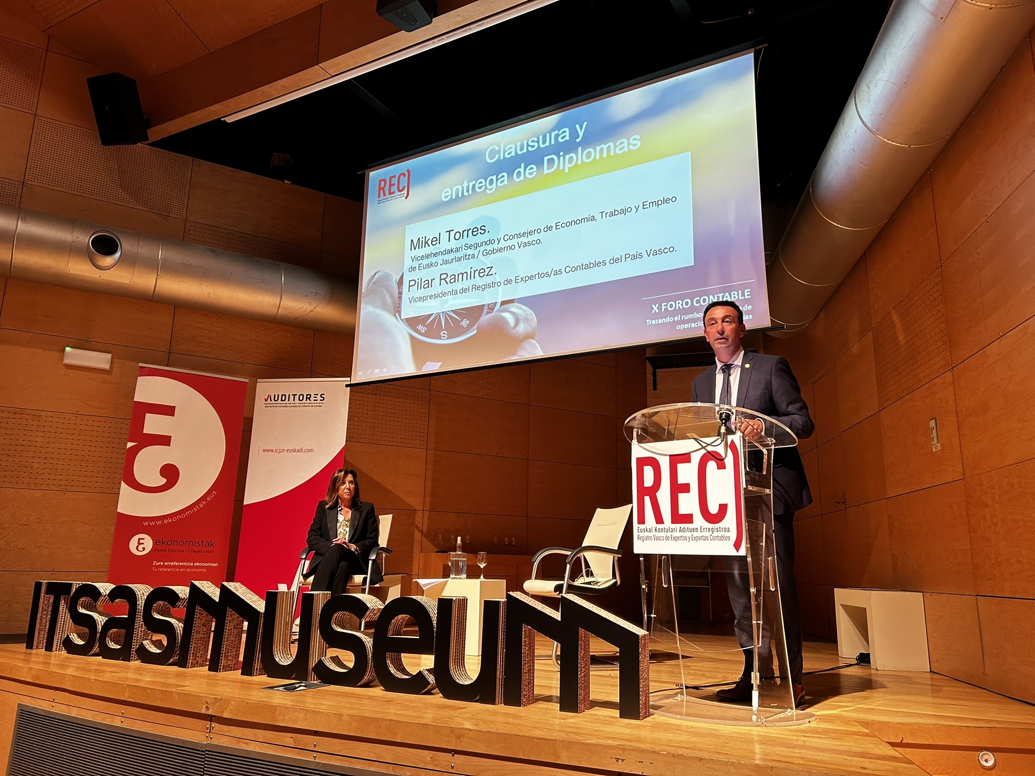 Fernando Cuñado, presidente del Registro de Expertos Contables de España (REC]), que agrupa al Instituto de Censores Jurados de Cuentas de España (ICJCE) y al Consejo General de Economistas (CGE), ha presentado en Bilbao la guía “El Experto Independiente Contable en el ámbito transaccional de compraventa de empresas”, dentro del X Foro Contable del País Vasco organizado por el Registro de Expertos Contables del País Vasco. La jornada, ha estado presidida por Mikel Torres, vicelehendakari segundo y consejero de Economía, Trabajo y Empleo del Gobierno Vasco, y ha contado además con la participación de Salvador Marín, vicepresidente del REC], Felipe Herranz, miembro del Consejo Directivo de Expertos Contables del CGE y del User Panel Working Group at EFRAG de Bruselas, Maite Echarri directora financiera de Sidenor/Mirai Investments y otros expertos y expertas tanto del Colegio Vasco de Economistas como de la Agrupación del País Vasco del ICJCE.