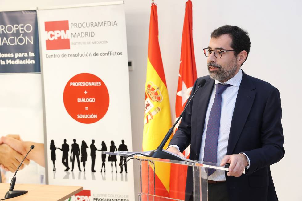 El acto ha sido presentado por Doña Maria Luisa Montero Correal, responsable del servicio de mediación del ICPM, que dio paso a la apertura institucional a cargo del Decano del ICPM Don Alberto García Barrenechea y a Don Alberto García Gonzaléz - Secretario General Técnico del Ministerio de Presidencia, Justicia y Relaciones con las Cortes.